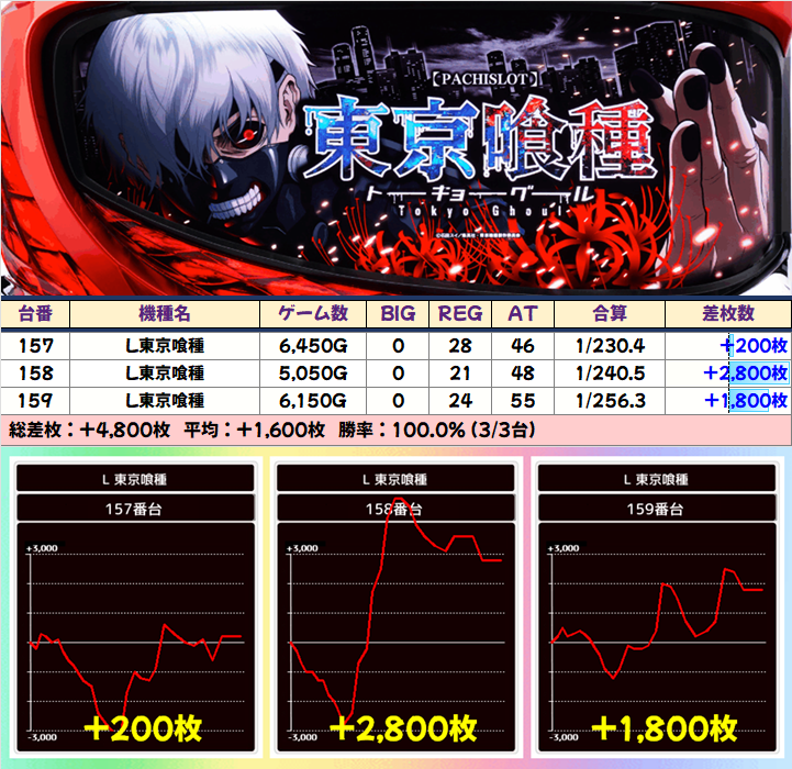 【3台並び】東京喰種(157-159)⏩Ave+1,600枚