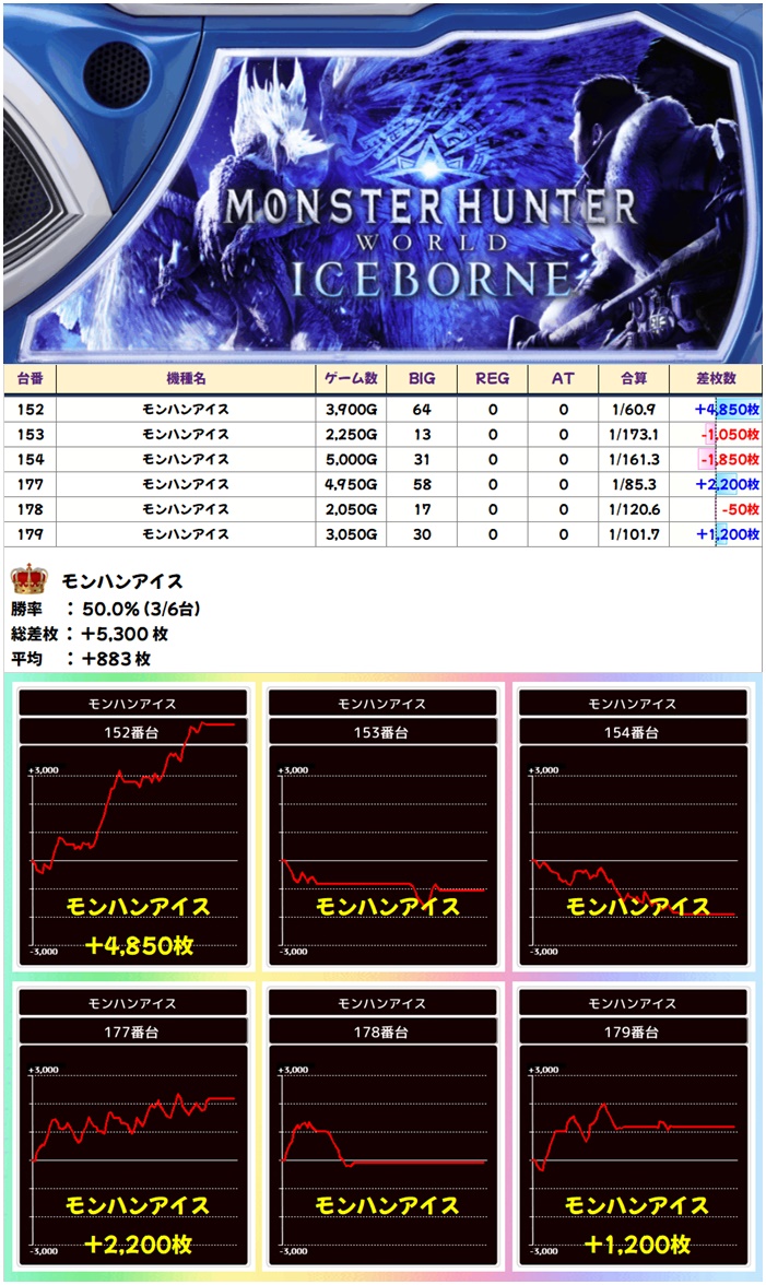 そしてモンハンアイス。3/6でプラスに平均+883枚と、ニブイチはあったかと。