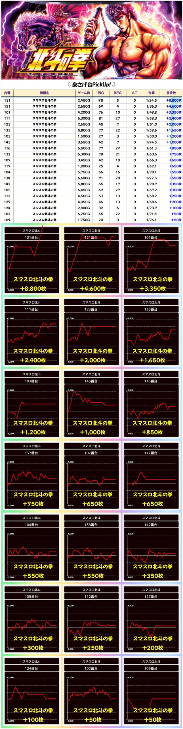 もちろん看板機種の北斗&カバネリからも優秀台を多数確認できました! これといった狙い台がない時は迷わずこの2機種狙いがオススメです。