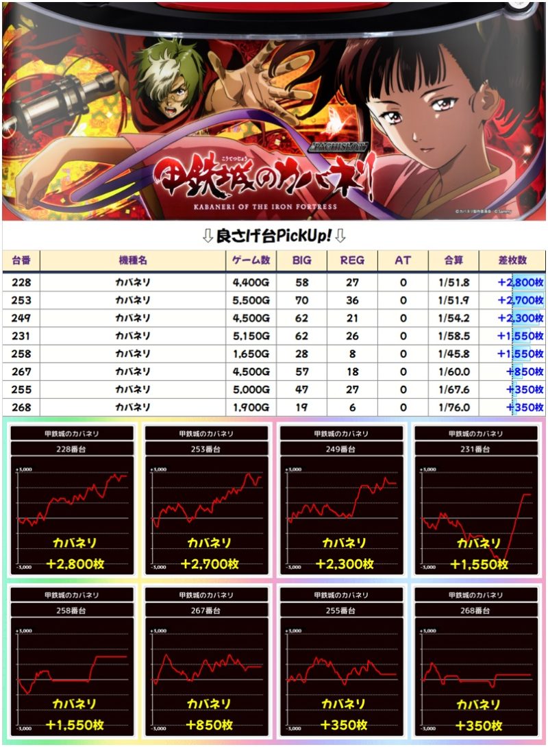 その他からも全台系やニブイチもあり、北斗&カバネリも相変わらずの高配分。ジャグも全体でプラスと②以外も一切の妥協ナシでした!