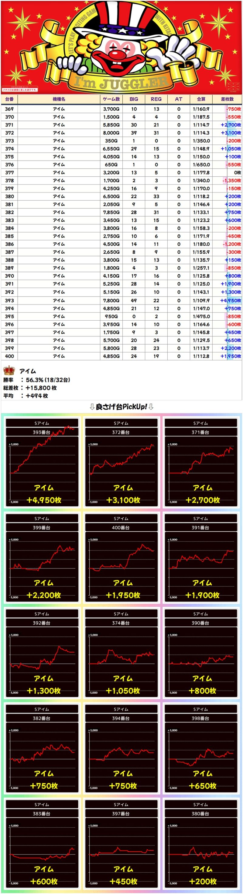 ジャグ系は全体でプラスとなりました! 中でも②つながりのファンキー2と、王道のアイムが高配分となっていました。