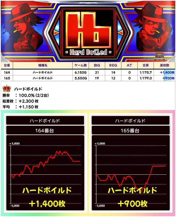 ハードボイルドは2台設置機種ということで、こちらも②繋がりでの全台系と見ていいでしょう!
