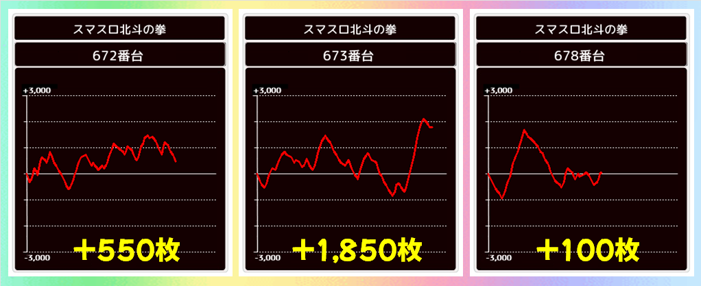 高設定と思しき台から爆発台が出現。650番台が差枚数+3900枚の好成績を収めました。