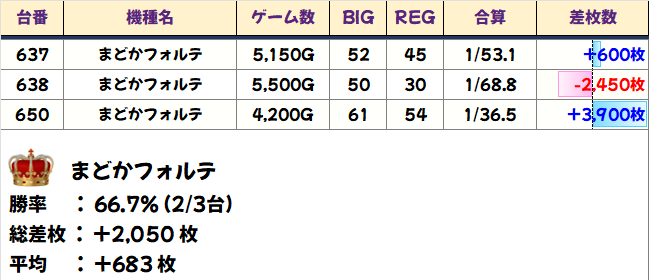 本日導入された「まどかフォルテ」にもお宝台アリ。優秀台が2台あったので1/2以上の仕掛けだったのかもしれませんね。