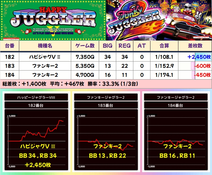 【3台並び】ハピジャグ・ファンキー2(182-184番台)