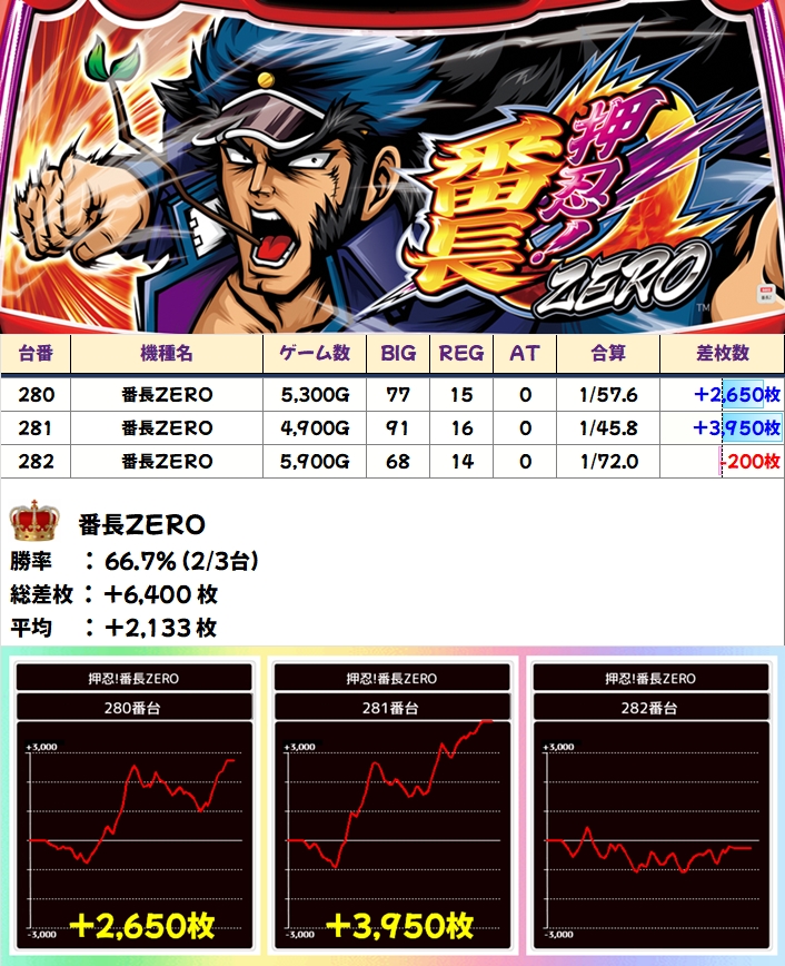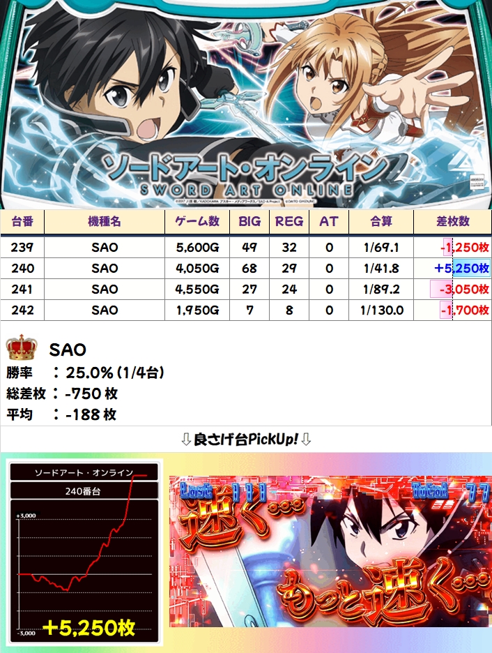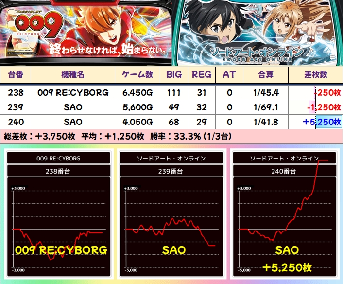 推し機種の傾向はしばらく変わらないと思いますので、次回の7のつく日も番長ZEROとSAOを狙っていきましょう!