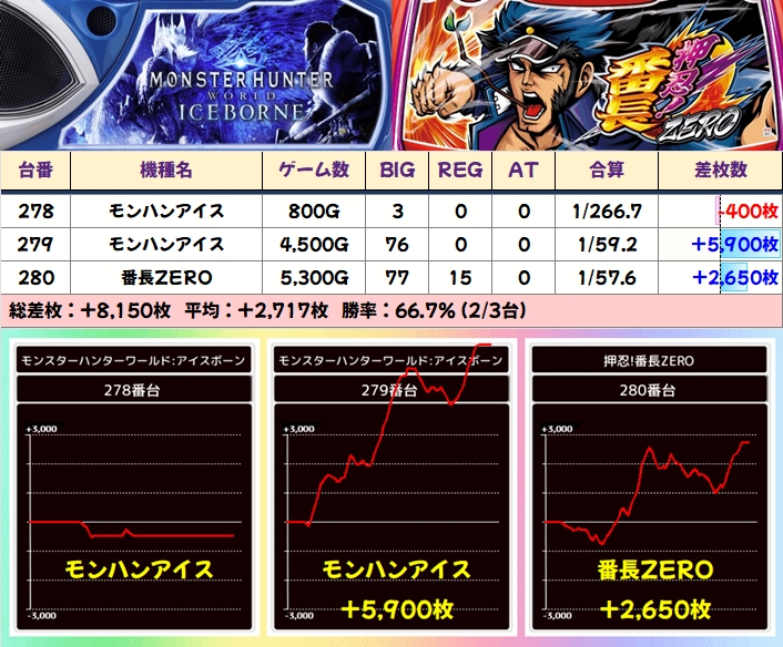 【3台並び】モンハンアイス・番長ZERO(278-280番台)