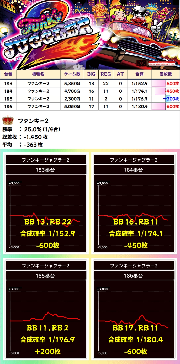 ファンキーに関してはREGの偏りのせいで不発となった台などもありますが、ブドウの出現率などから仕掛けの対象だということは分かっていたようですね。