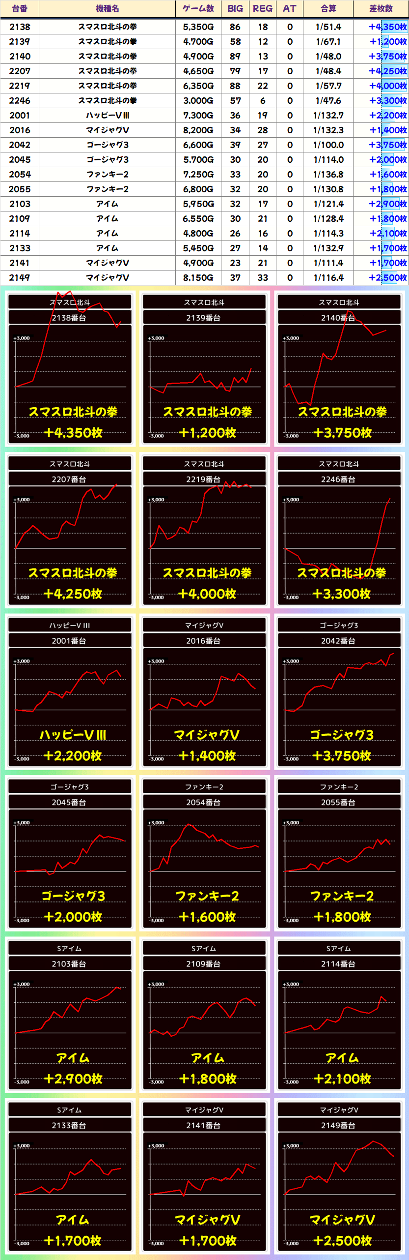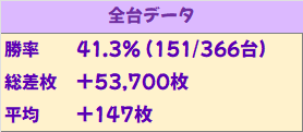 総差枚はしっかりプラス!台平均も+147枚と優秀な結果を残しました!