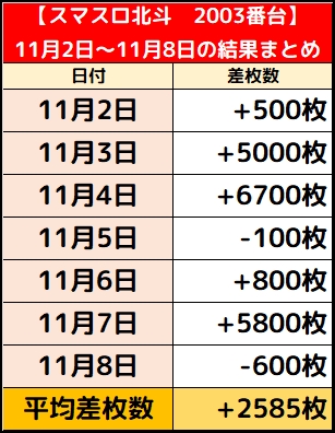 2003番台は7日間の平均差枚が+2500枚オーバーと素晴らしい結果に!