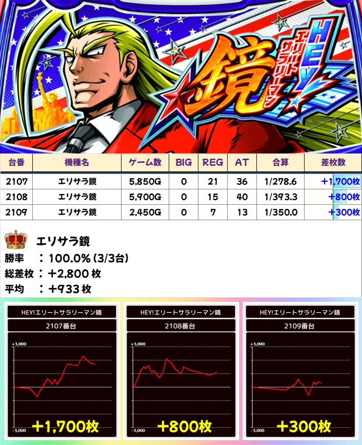 【1/2系】エリサラ鏡(3台):平均+933枚
