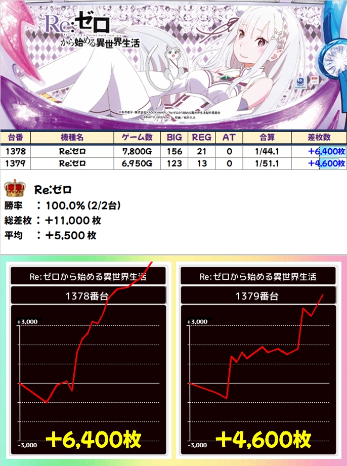 【全台系】Re:ゼロ(2台):平均+5500枚