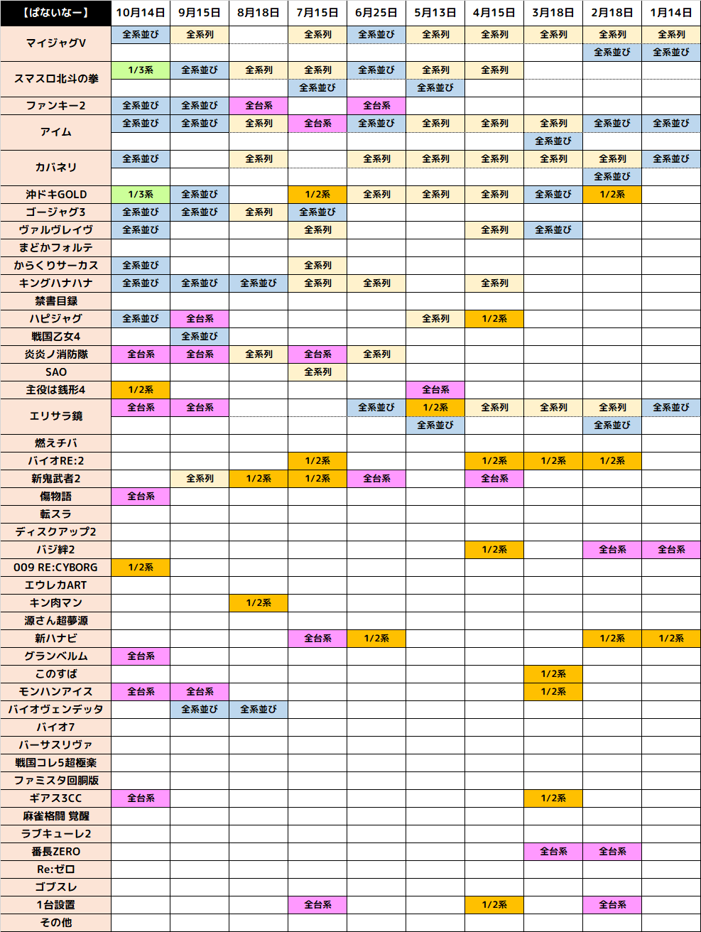 ちなみに下記は「キングぱないなー」時の仕掛けになりますが、全台系、1/2系、1/3系、列・並びと質も量も最高クラス!