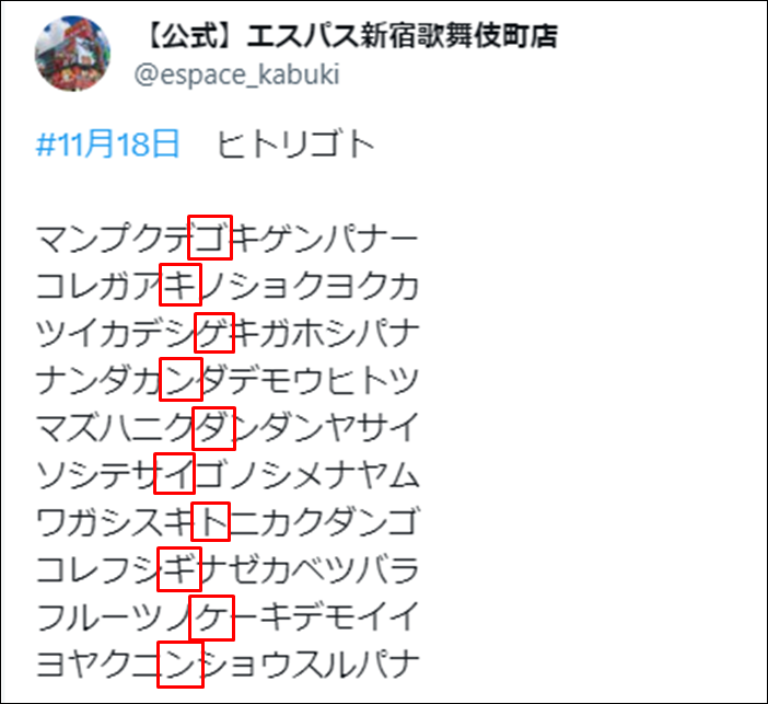 ちなみに前述した、ヒトリゴトの答えは文章を上からギザギザ読みすることで判明!