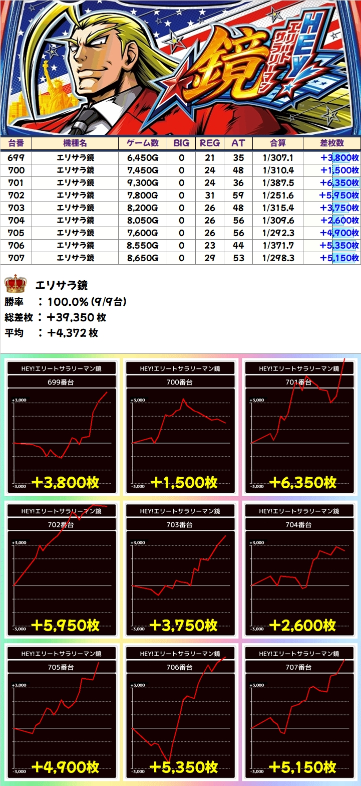 【全台系】エリサラ鏡(9台):平均+4372枚