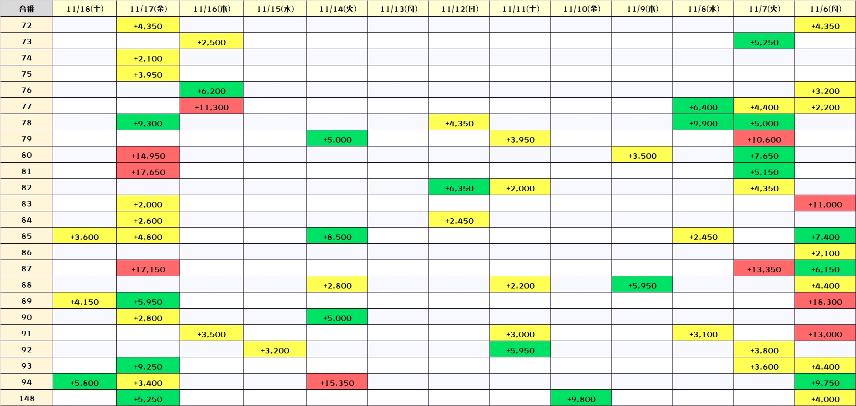 下記はスタートの11/6~の累積結果になります! 今後も更新していきますので立ち回りに活かしてください!