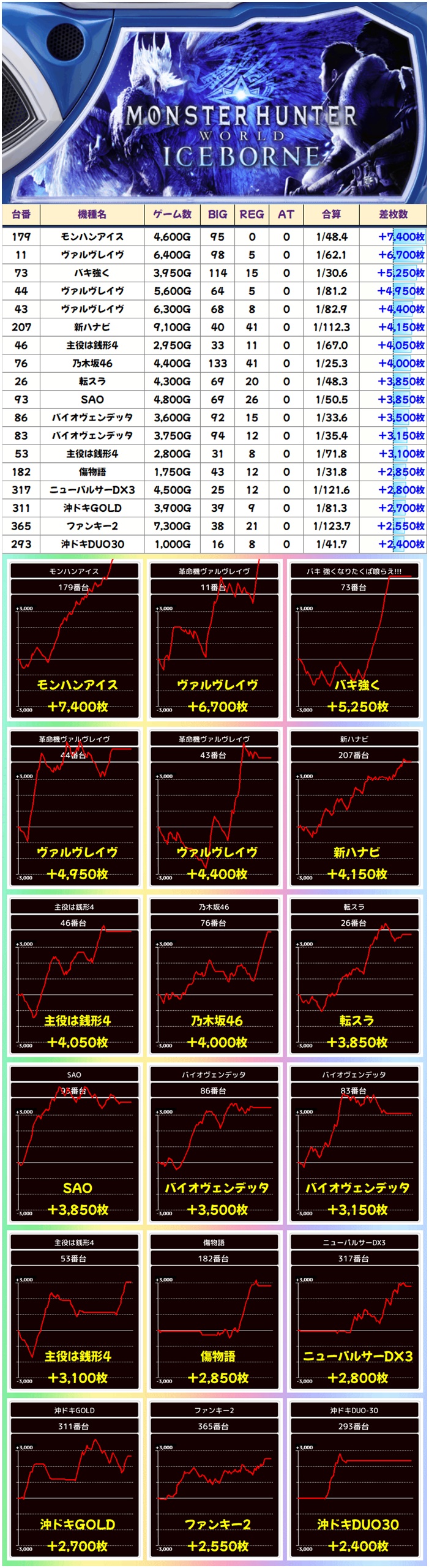今回の総差枚は約+18.8万枚&台平均+470枚という超好結果となりました!