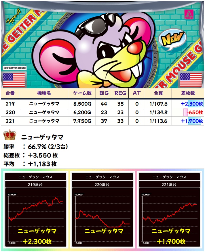 🌈ニューゲッタマ(3台)【平均+1183枚】