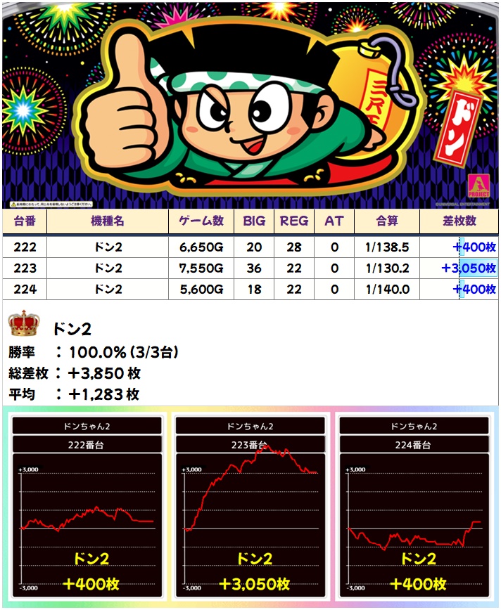 🌈ドンちゃん2(3台)【平均+1238枚】