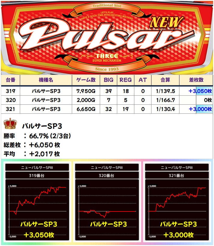 🌈ニューパルサーSP3(3台)【平均+2017枚】