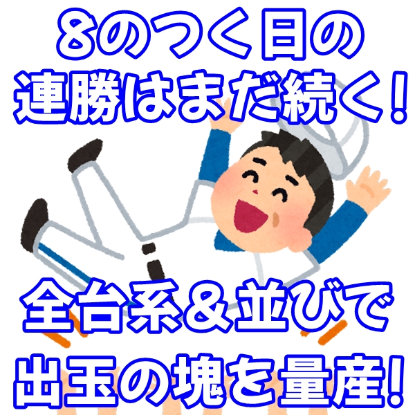 32連勝という数字を見るだけで8のつく日の強さが分かりますね。