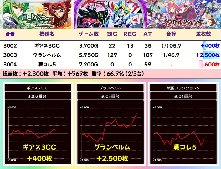 【3台並び】ギアス3C.C.・グランベルム・戦コレ5(3002-3004番台)