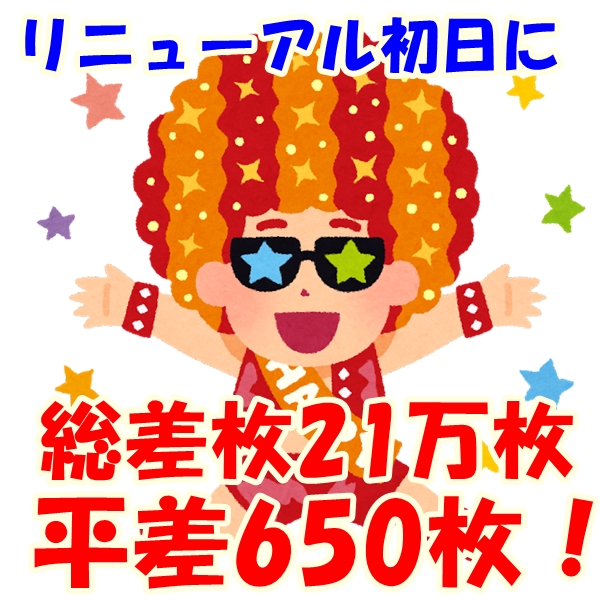 +21万枚超の爆出し‼ 台平均は650枚‼