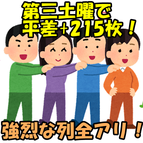 以上、第3土曜日の結果でした!やはり今回の目玉となるのは列全仕掛けでしょう!第3土曜は毎月しっかりプラスとなっているので、とにかくオススメ!来月もしっかり狙っていきたいですね!