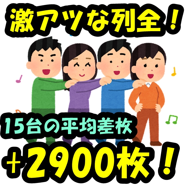 台平均も2900枚!勝率もかなり優秀で、ド派手な結果を残しました!なんども言いますが、最近は列仕掛けもかなり多用されています。並び仕掛けもあるため、周りの台に注目しながら実践したいですね!