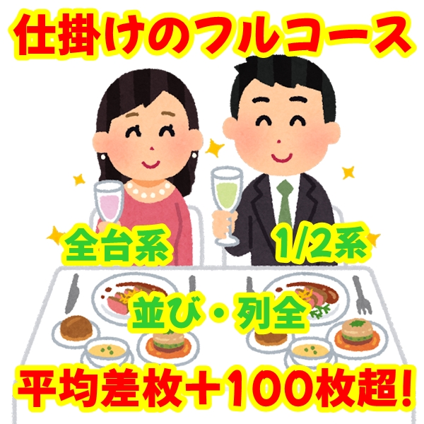 そして忘れてはいけないのが、5台以上の並びや列全といった多台数を絡めた仕掛け。今まで確認できた列全仕掛けは、全台系の連続やバラエティ丸ごと高配分などのパターンがあり、強い日は必ずと言って良いほど列全仕掛けを確認できています。