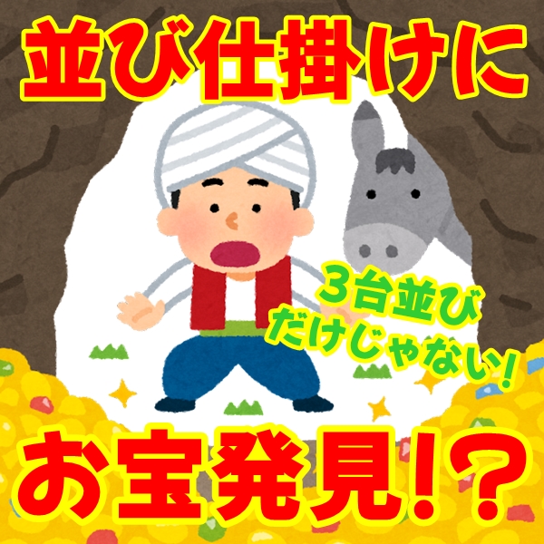 30パイにも機種またぎの並びがあったということは、これは新たなパターンとして今後も使われると予想されます。そのため、並び仕掛けを探す際は機種またぎの箇所もチェックするクセをつけるようにしましょう。
