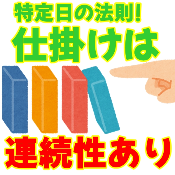 また、2のつく日と双璧をなす特定日ということで、仕掛けの傾向自体も似ている点が多いです。