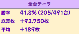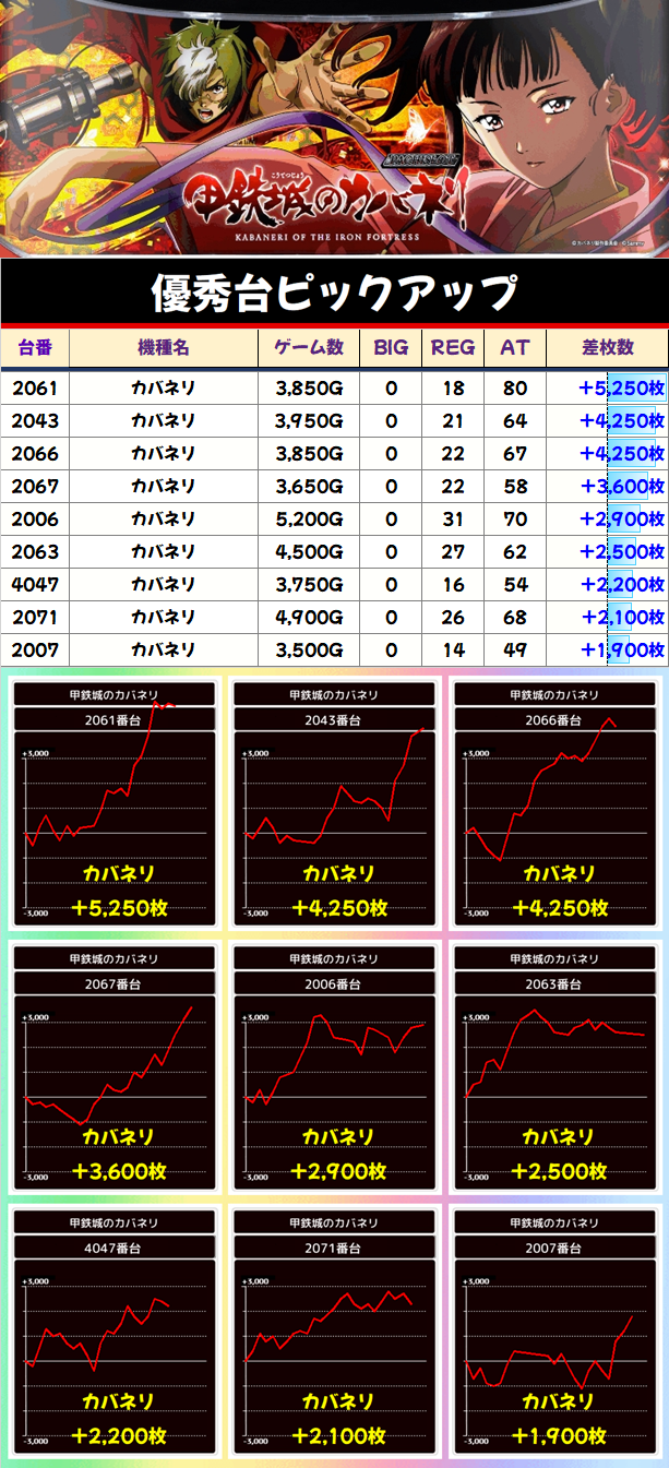 こちらも6.5号機メイン機種!41台設置の「カバネリ」は41台中21台がプラスで平均+441枚の結果に!