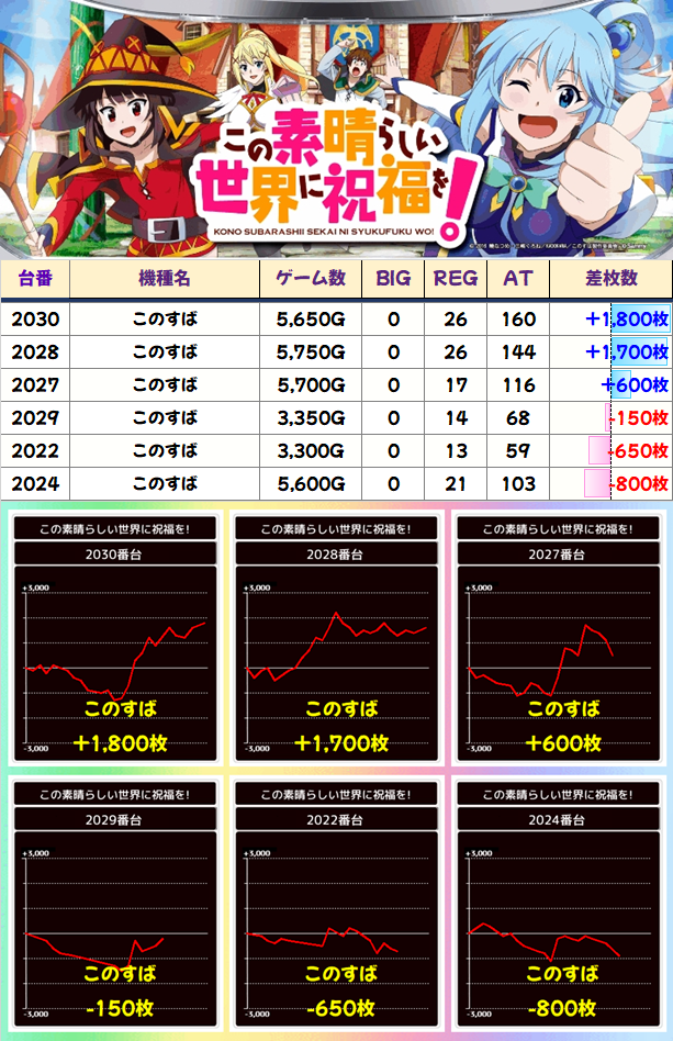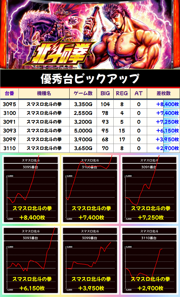 北斗もしっかり結果出してます!30台設置の「スマスロ北斗の拳」は30台中12台がプラスで平均+587枚の結果に!