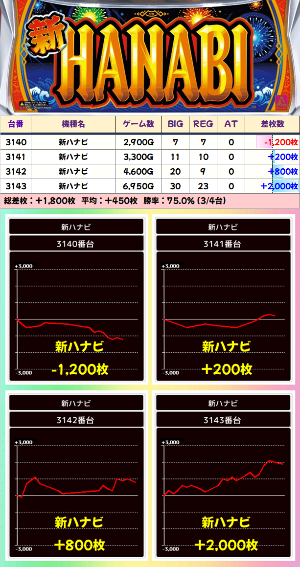 Aタイプにも入れてきます!4台設置の「新ハナビ」は4台中3台がプラスで平均+450枚の結果に!