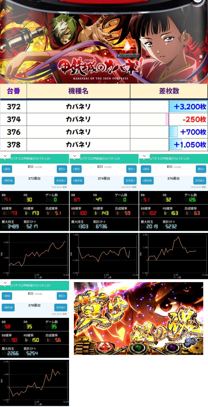 1/2系である「カバネリ」の対象台は+3200枚の台を筆頭に4台中3台がプラスでした!