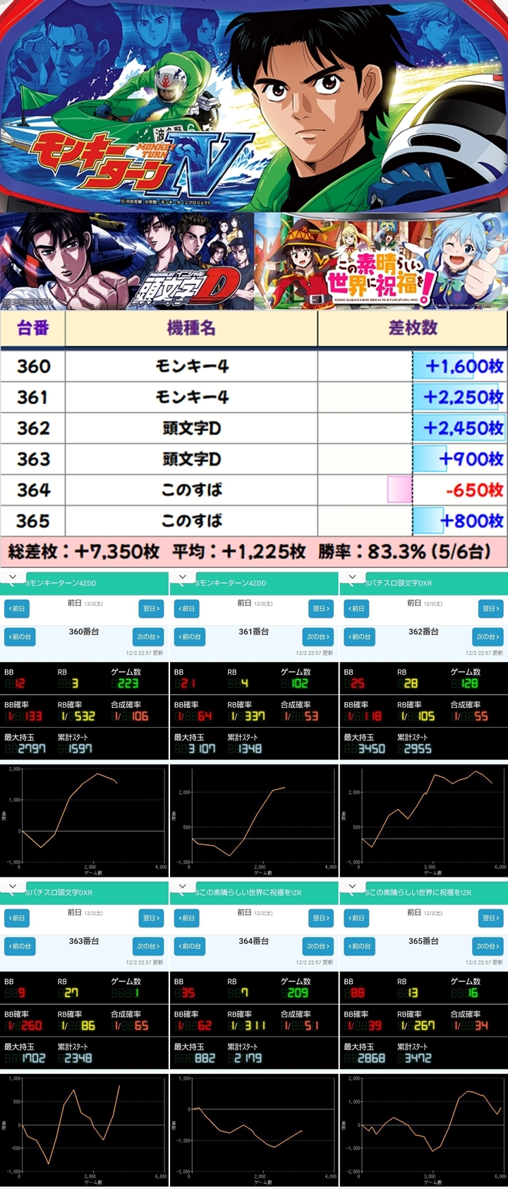 【6台並び】モンキー4-頭文字D-このすば:平均+1225枚