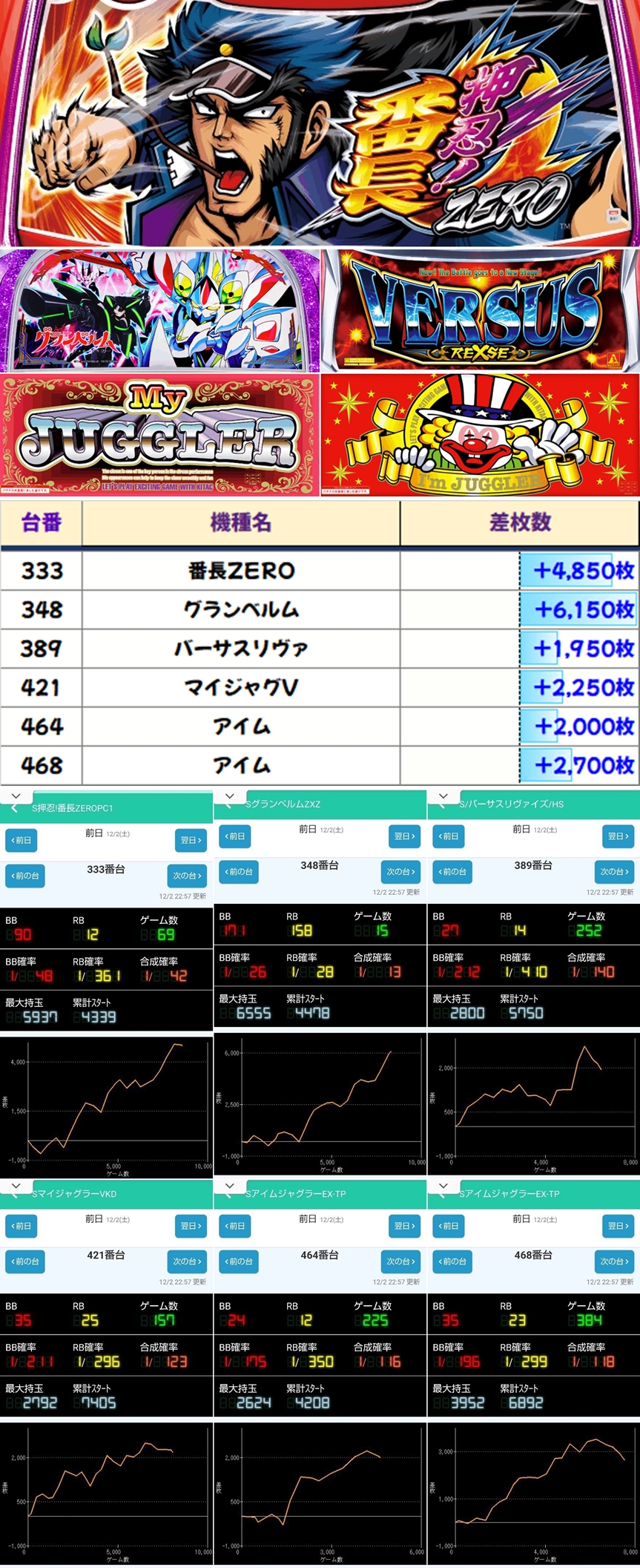 6台中5台がプラスで平均+1225枚と堅実な結果を残しました!