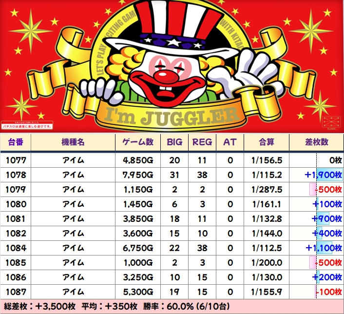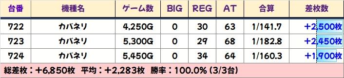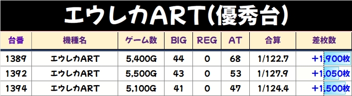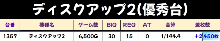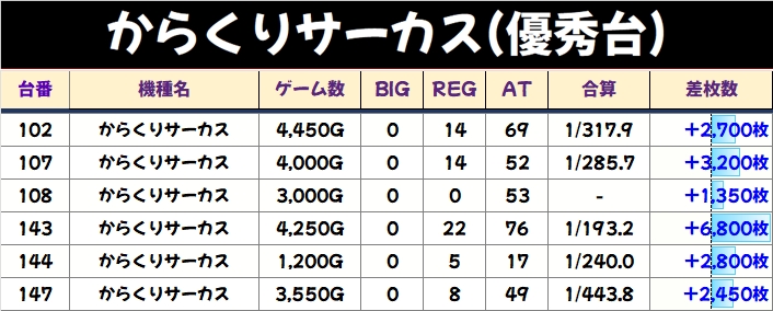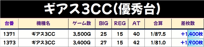 稼働から結果まで素晴らしくどちらも平均差枚は2000枚オーバー!全系並び以外にもそれぞれ単品優秀台が多数ありました(後述)