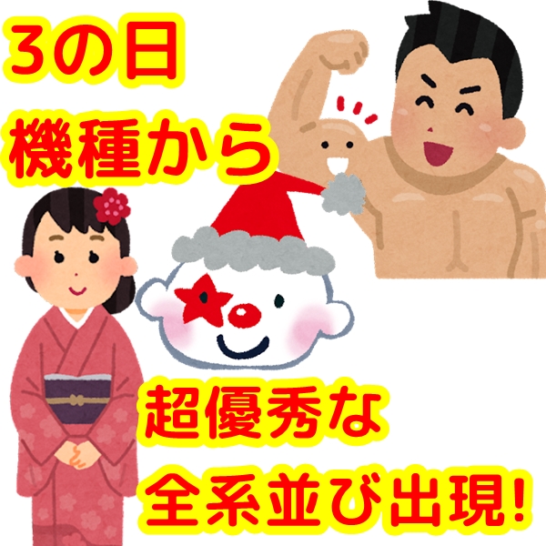 3の日は狙い機種も絞りやすいので、前日データや前回結果などから狙いを定めて打ちに行きましょう。
