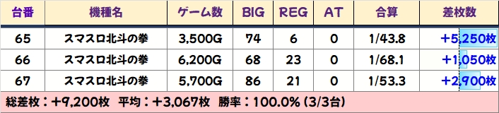 【全系並び】スマスロ北斗(3台):平均+3067枚