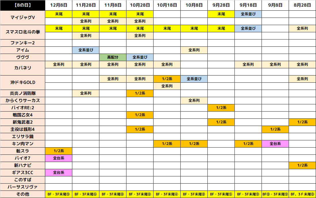 エスパス歌舞伎町店の8のつく日はフロアごとに「全台系、列・並び、末尾」などの仕掛けがあるのが特徴です!