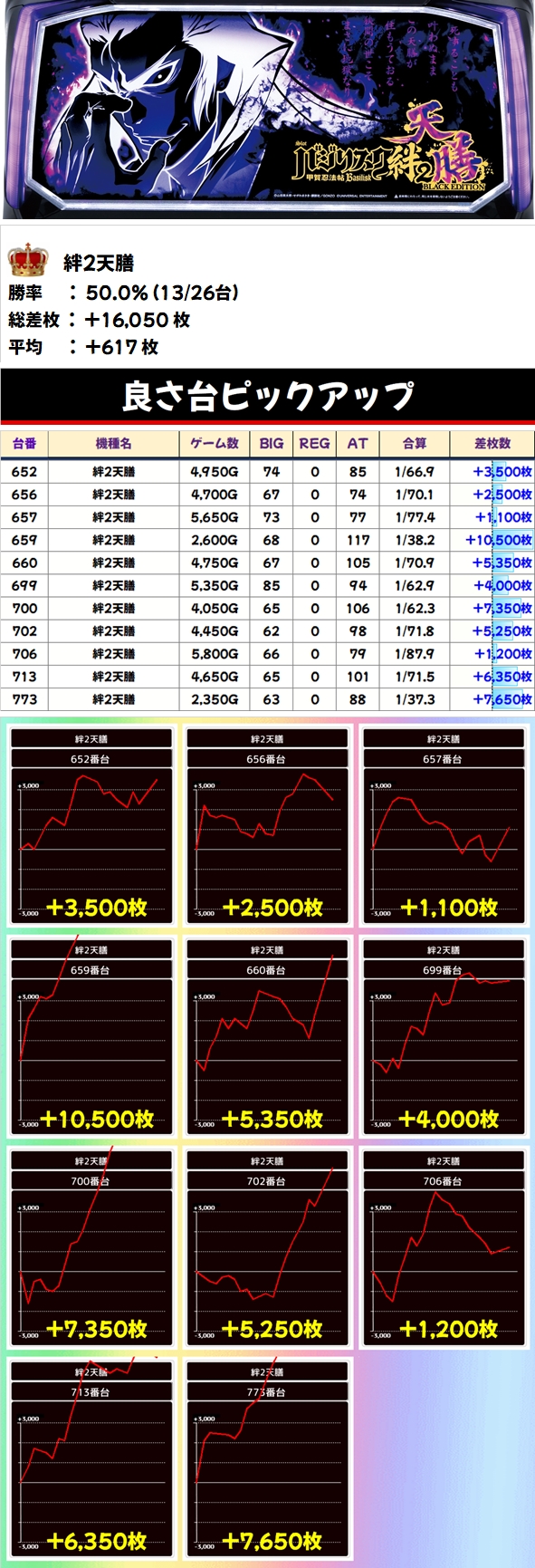 【1/2系】絆2天膳(26台):平均+617枚