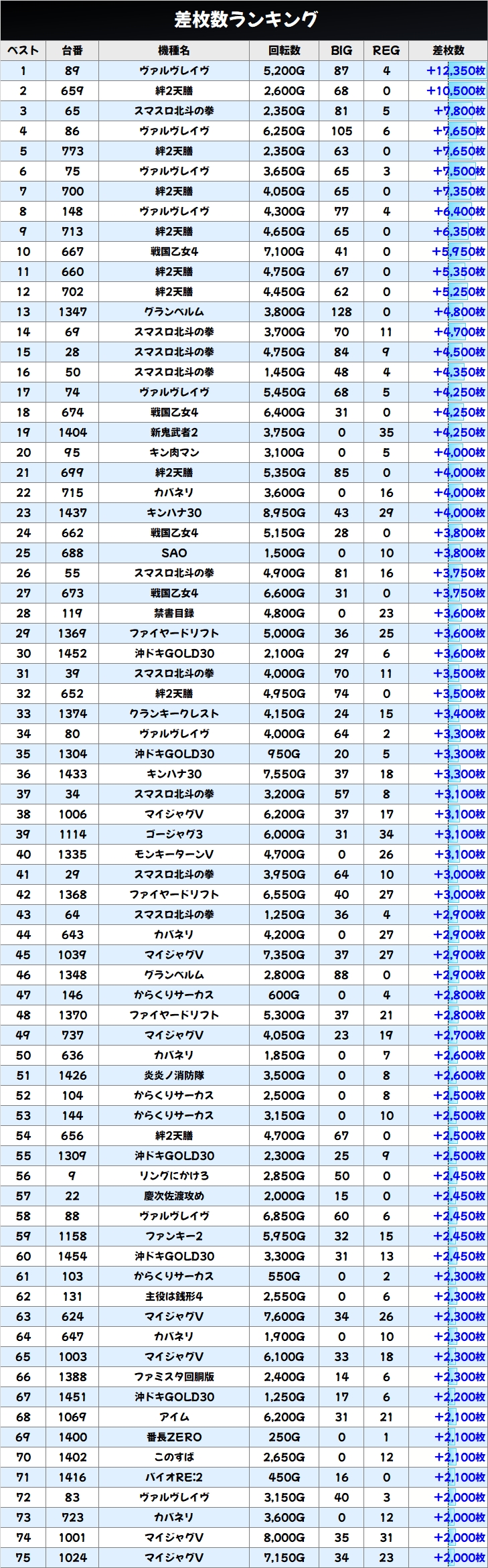 この日は75台が+2000枚以上で全体でもしっかりプラスでした。