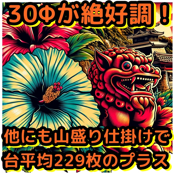 今回は総差枚約10万枚のプラス、台平均+229枚と素晴らしい結果でした。次回の3の日は年明けとなりますが、2024年も3の日は変わらず強いと思われるので、期待しましょう。