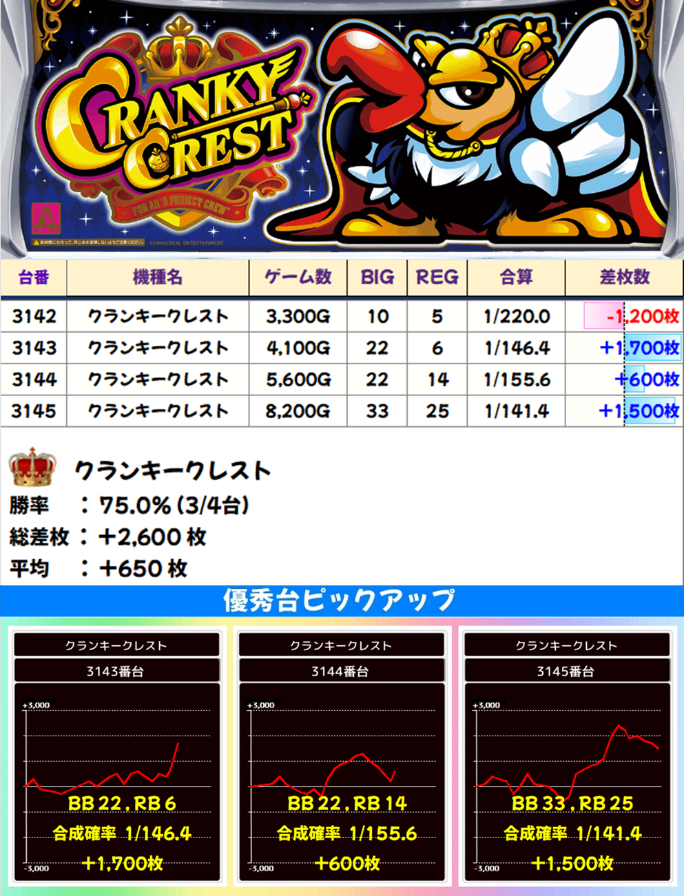 ノーマルタイプも抜かりナシ。「クランキークレスト」も高配分機種になっていました。