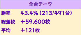 4台設置の「ラブ嬢3」は平均差枚+238枚で4台中3台がプラス差枚。クリスマスと言えばシャンパンなので、シャンパンから連想される「ラブ嬢3」は全台系だったのかもしれませんね。