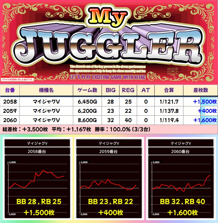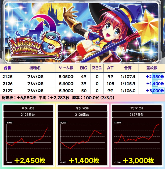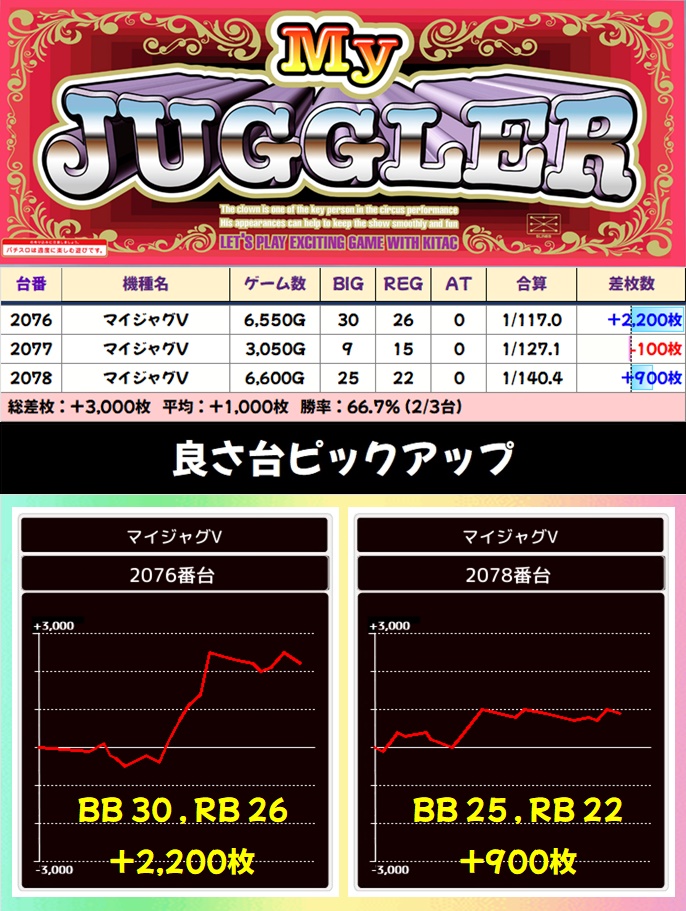2ヵ所ともに平均が+1000枚を超える納得の結果といえるでしょう!