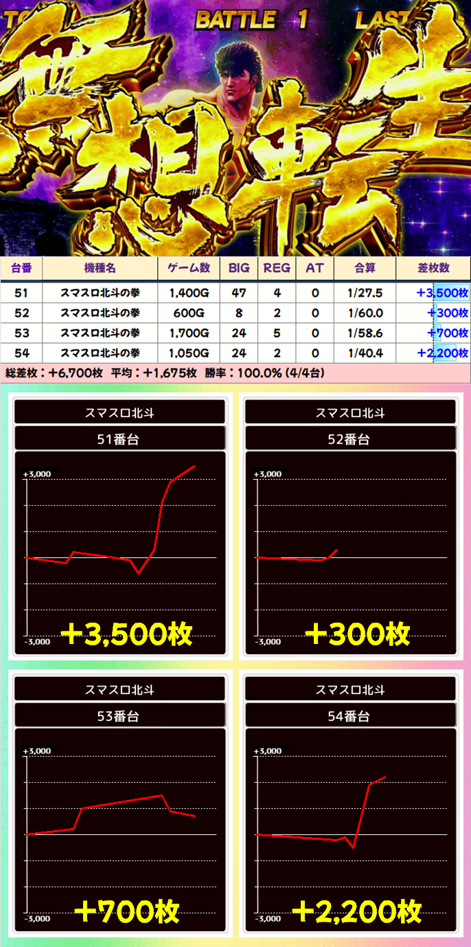 この日は1.6万枚を筆頭に5000枚、6000枚、9000枚と大量出玉の乱舞!元祖スマスロとしてしっかり結果を残しています!