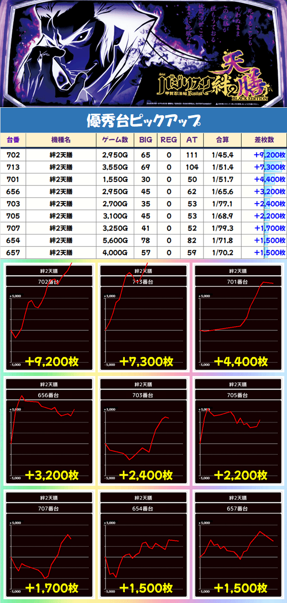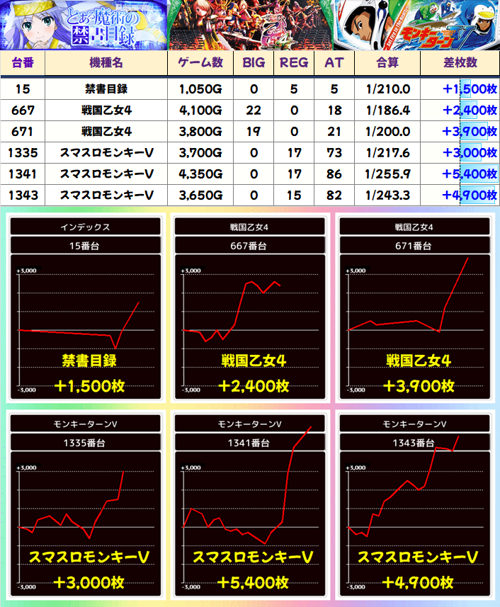 からくりサーカスからは3000枚オーバーが6台あり!5000枚クラスも2台とかなり優秀な結果に!